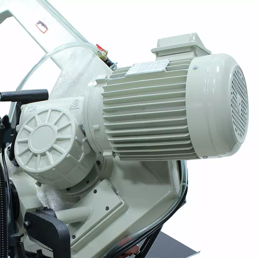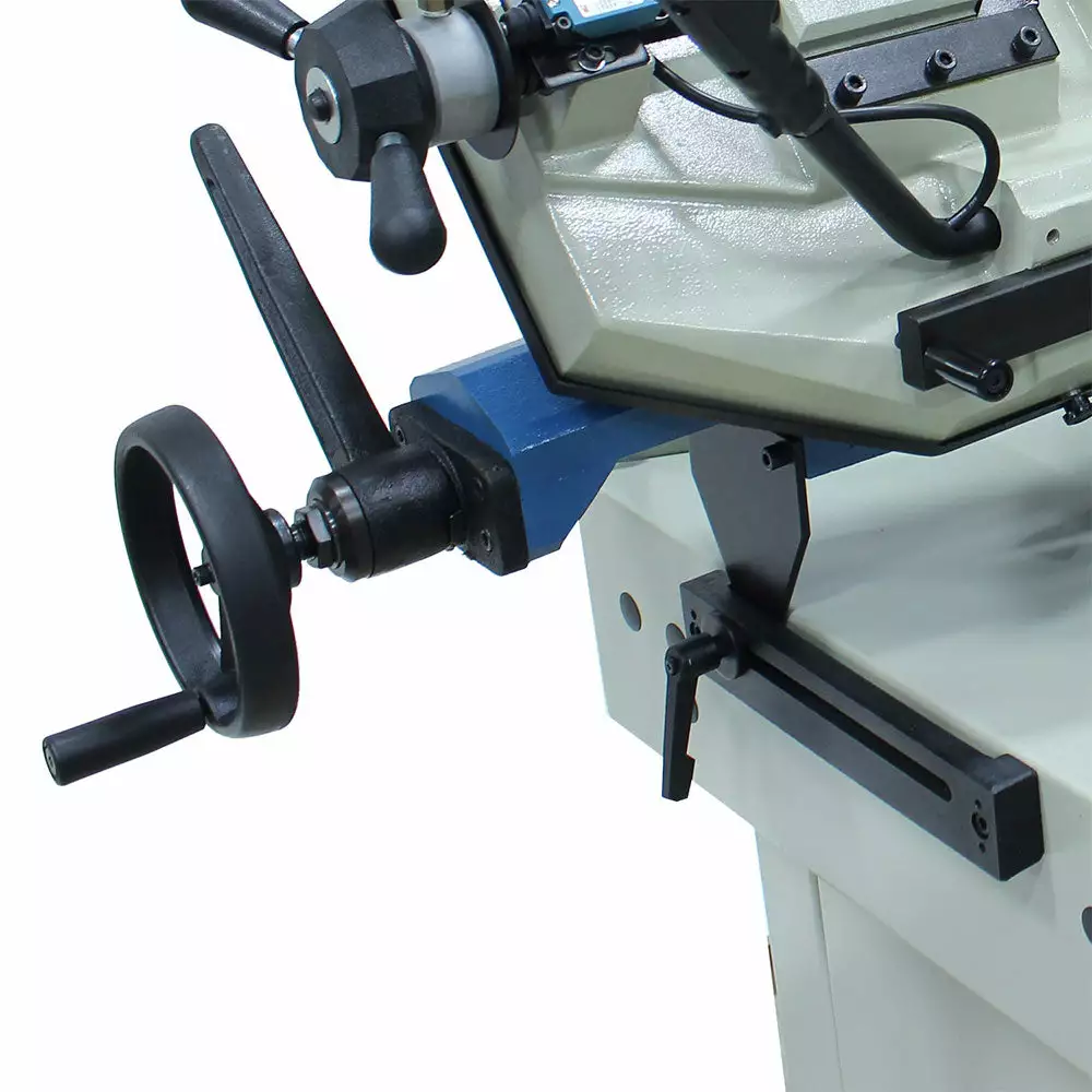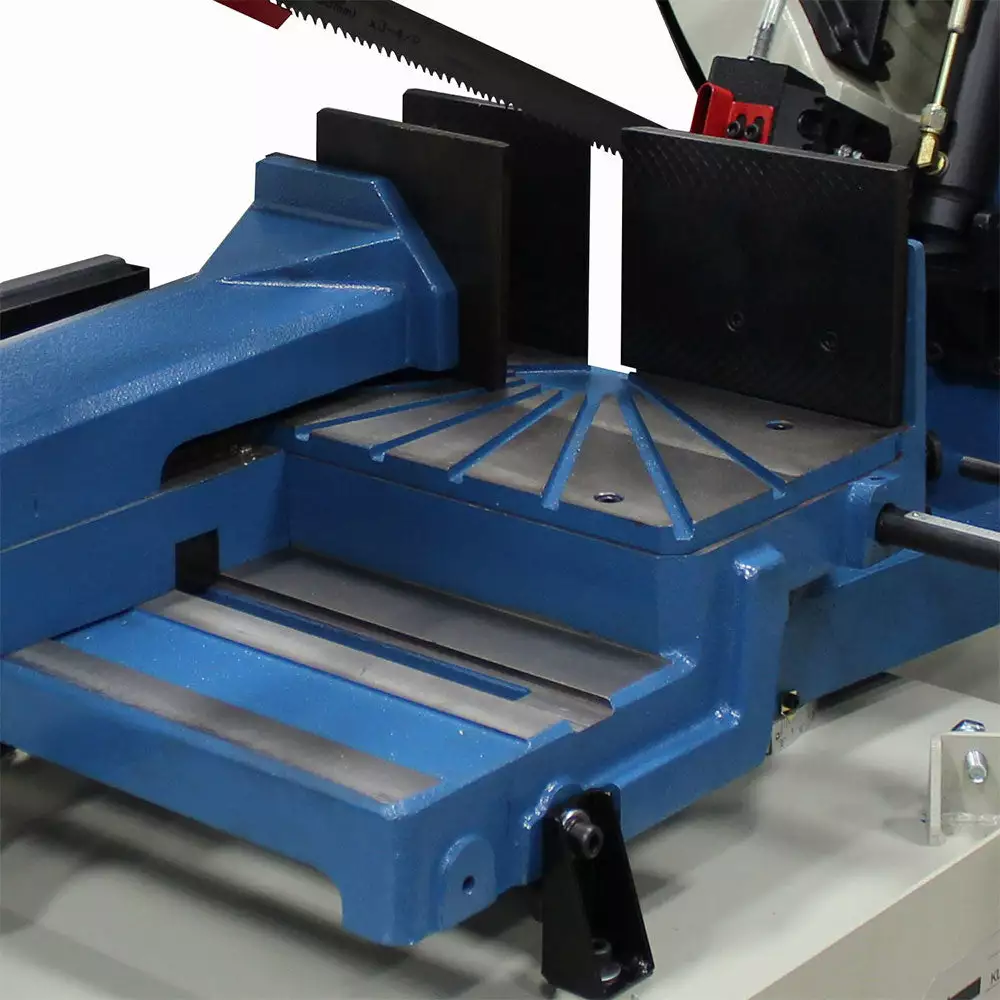 - Runs on 220-volt single-phase power. You can use the dual miter band saw just about anywhere.