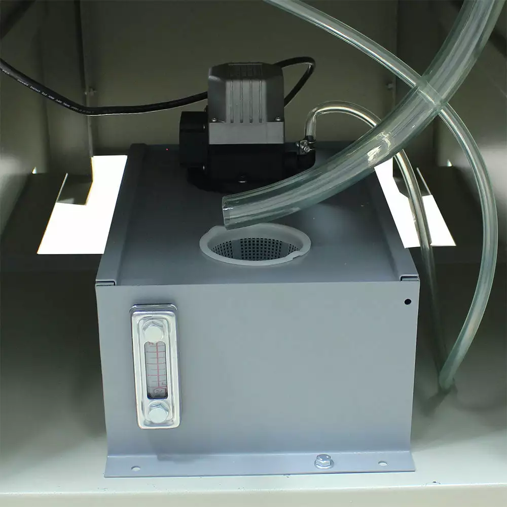 - Comes standard with a flood coolant system to wash away metal chips and help blades last longer.