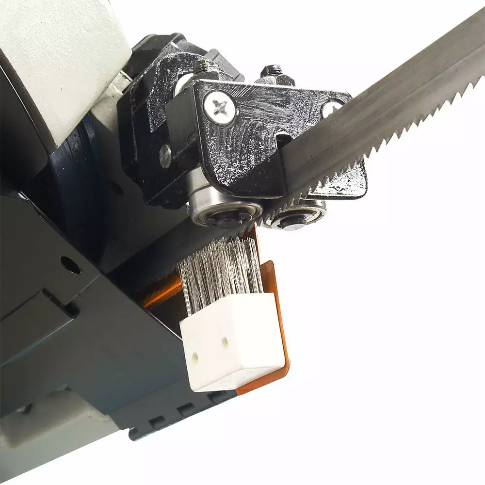 - Adjustable blade guides attached to the saw head, with 8 sealed ball bearings, help align the blade and increase its lifetime of use.
