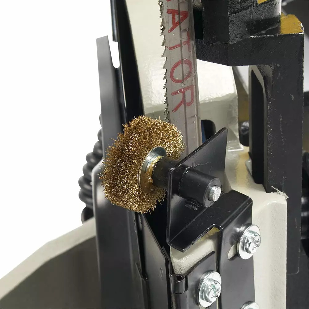 - Pair of adjustable blade guides, attached to the saw head along with 8 sealed ball bearings, maintain alignment and increase the life of the blade.