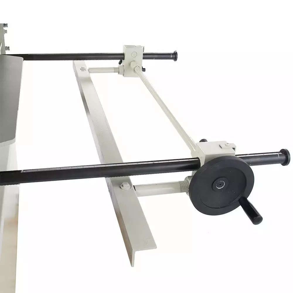 - Hold-down carriage with 9 fingers clamps the sheet metal firmly against the infeed table, improving blade life.