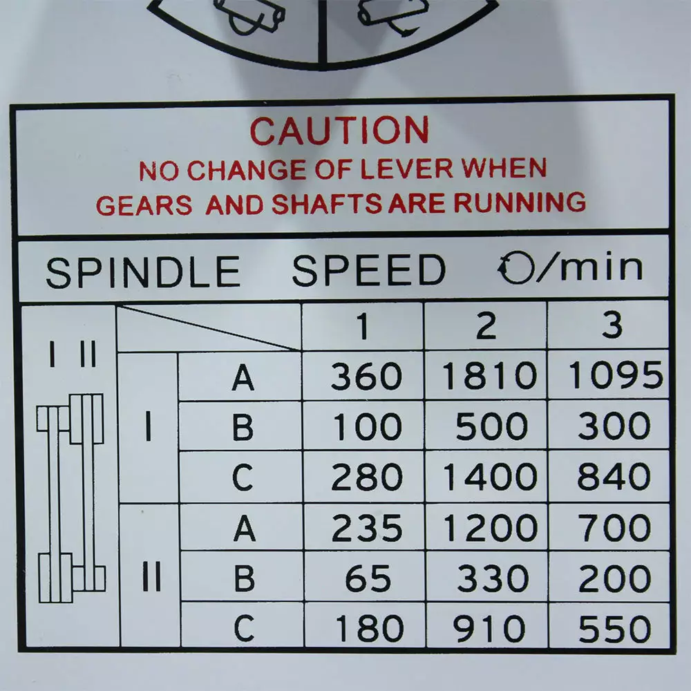 | Spindle Speed | 9 (70 – 1400 rpm) |