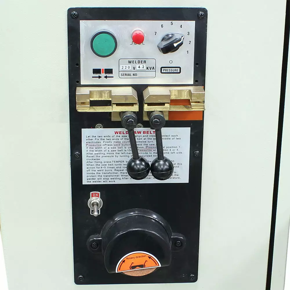 - Comes standard with a fully-integrated blade welder with a built-in grinder for finishing the weld joint—great for getting to the center of a cut or repairing blades.