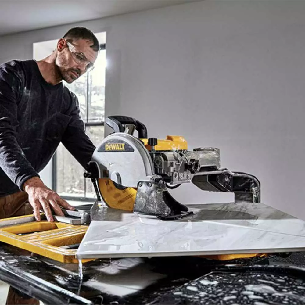 - 37 in. rip cut capacity (41 in. with plunge) and 18 in. cutting clearance left of the blade allows users to rip 36 in. x 36 in. tile in half
