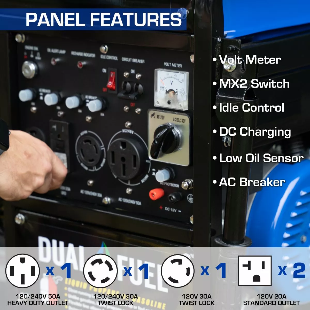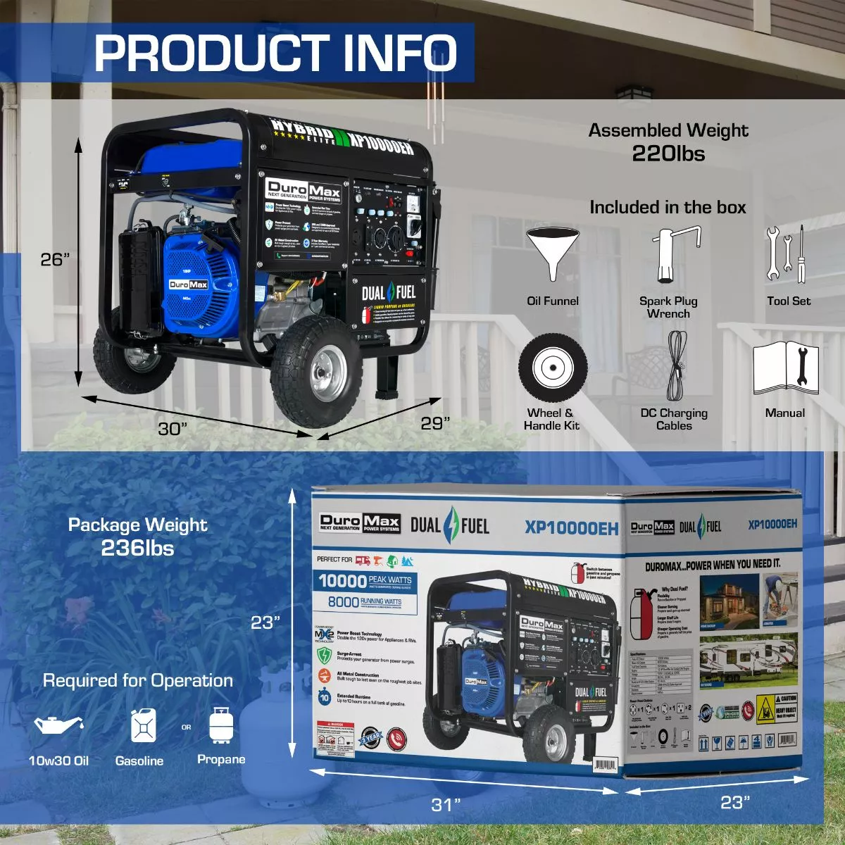 - DuroMax XP10000EH Electric Start Dual Fuel Generator.