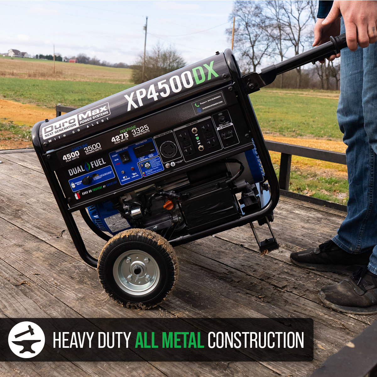 The DuroMax XP4500DX Generator has a Cast-Ironed