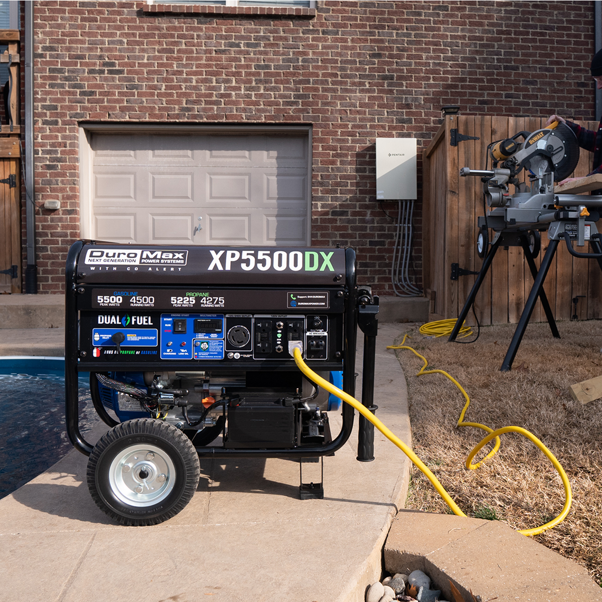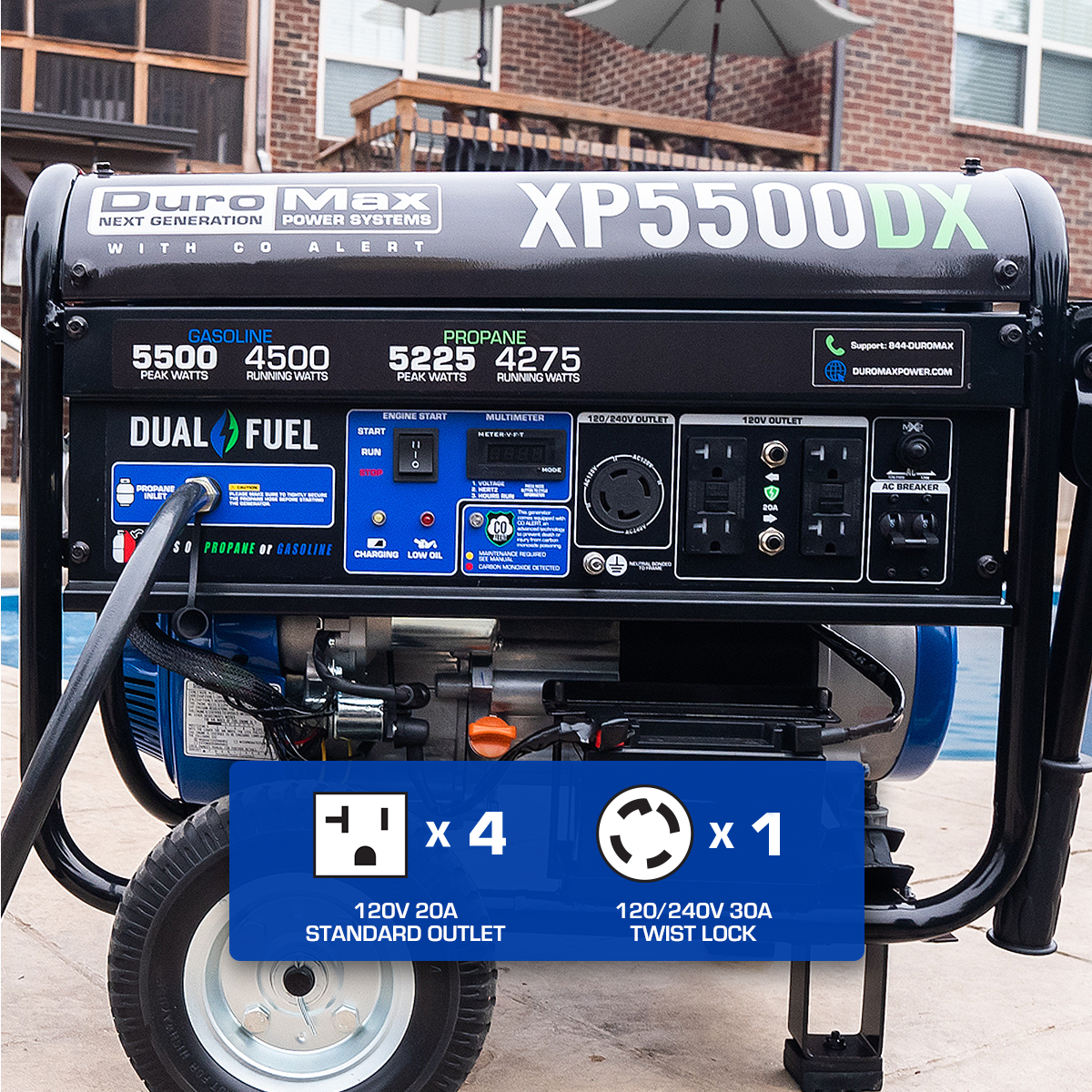 - DuroMax XP5500DX Dual Fuel Gas Propane Portable Generator.