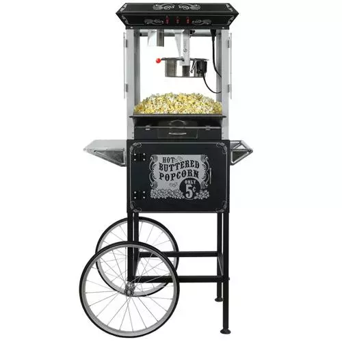 FunTime Carnival 8oz Popcorn Machine with Cart, Black/Silver (FT860CB)