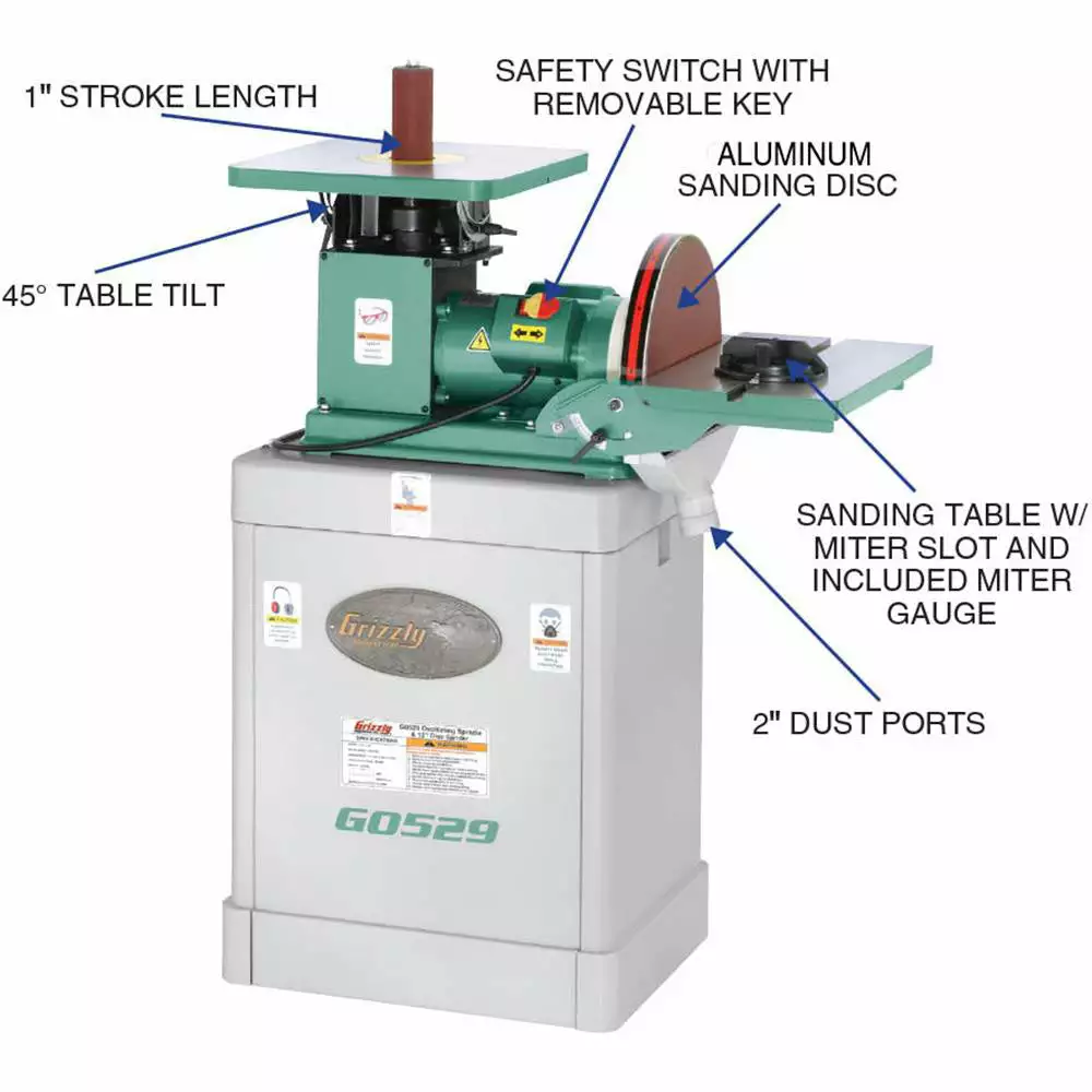 - Oscillating Spindle / 12 in Disc Sander – G0529