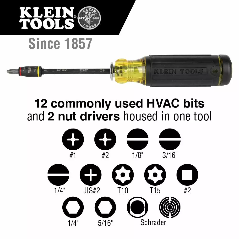 Klein 32304 14-in-1 HVAC Adjustable-Length Impact Screwdriver W/ Flip Socket Tools & Equipment