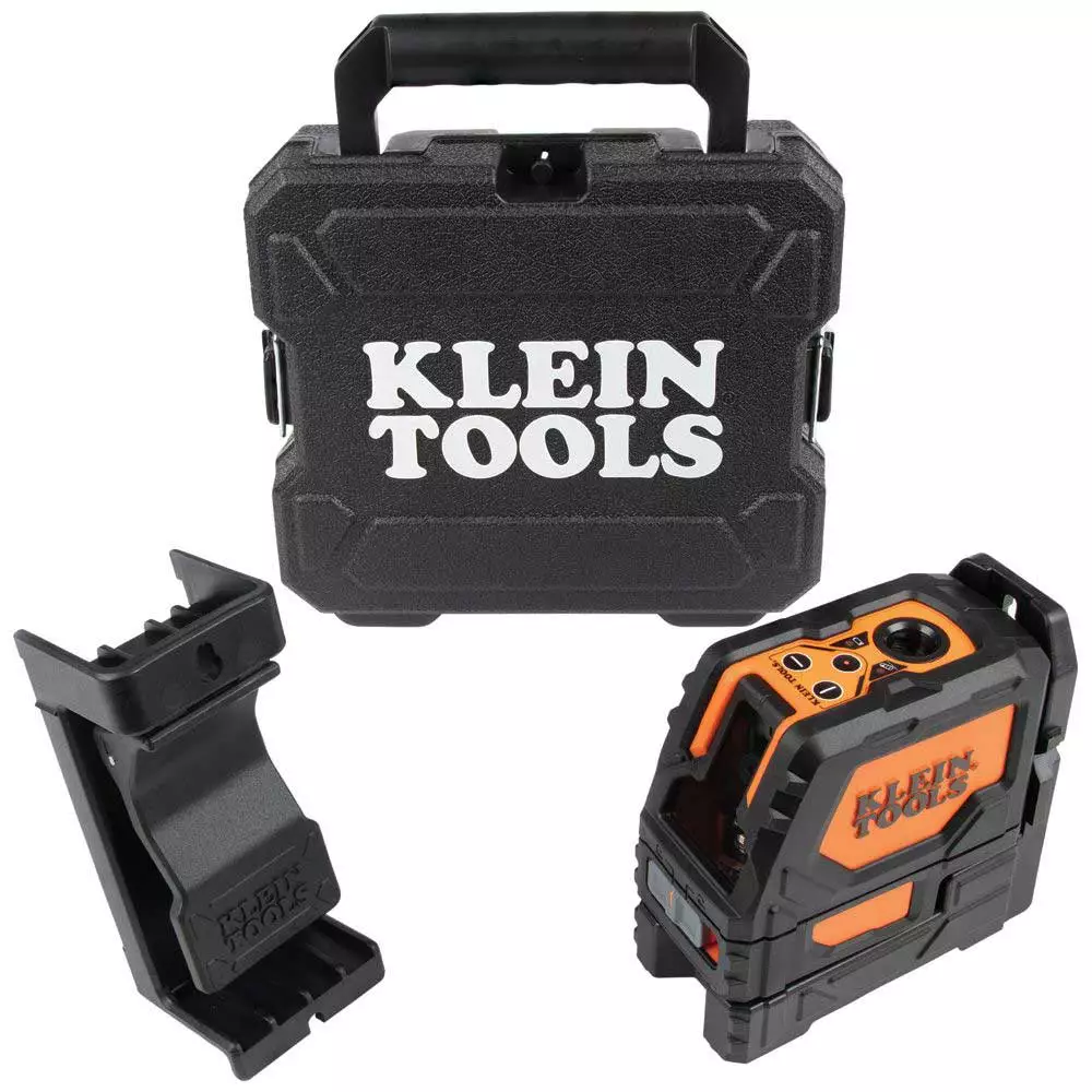 - The self-leveling laser level is easy-to-read with green horizontal and vertical laser lines and red plumb spot lasers