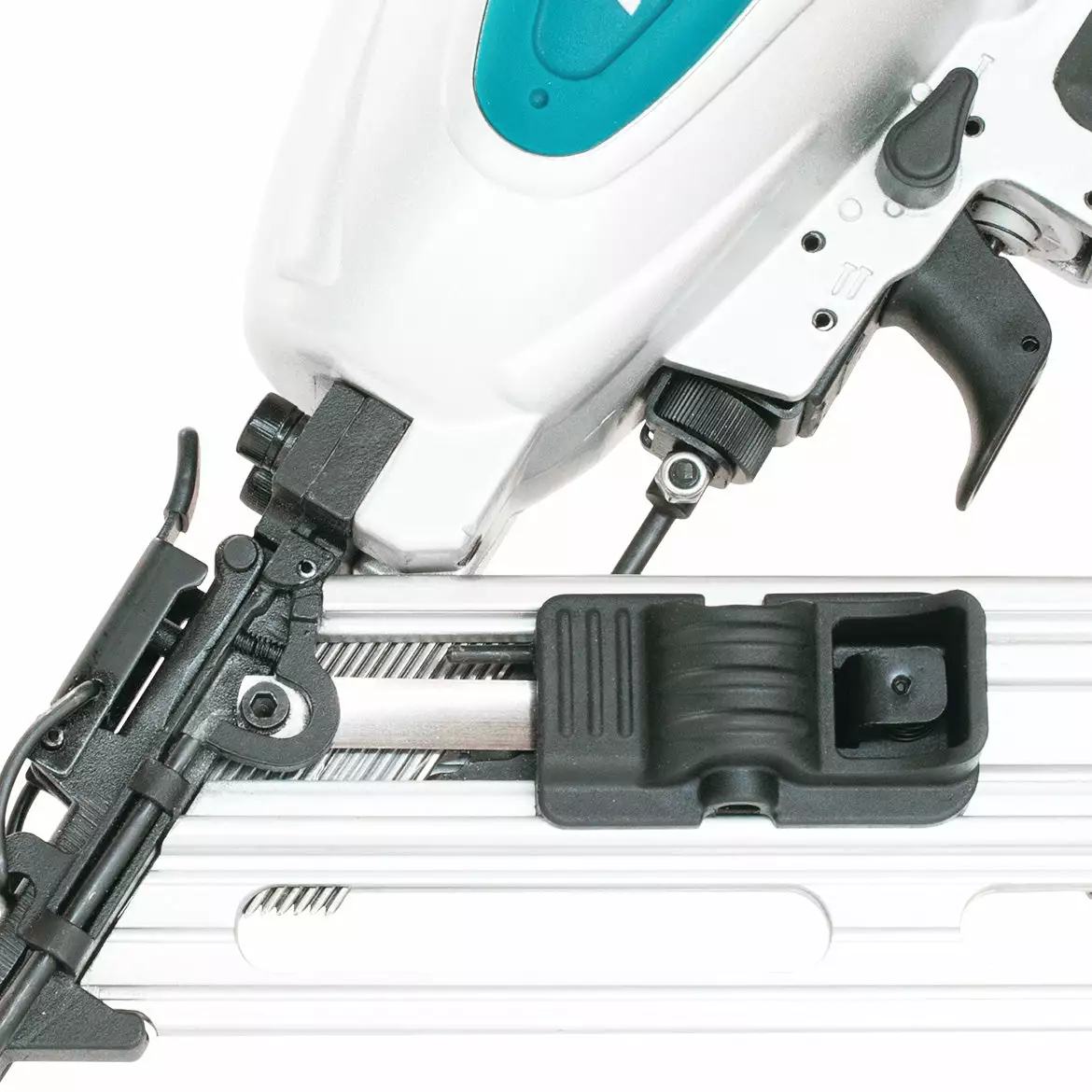 - Powerful motor drives 15 gauge “DA” style angled finish nails from 1-1/4″ to 2-1/2″