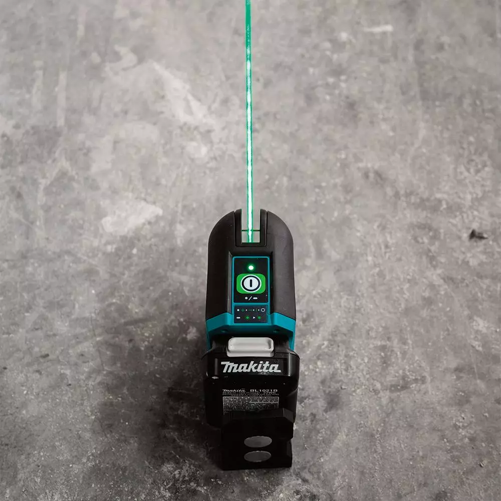 - Green line visibility range up to 115’ depending on ambient light and detectable up to 262 with Makita Laser Detector LE00855702 (sold separately)