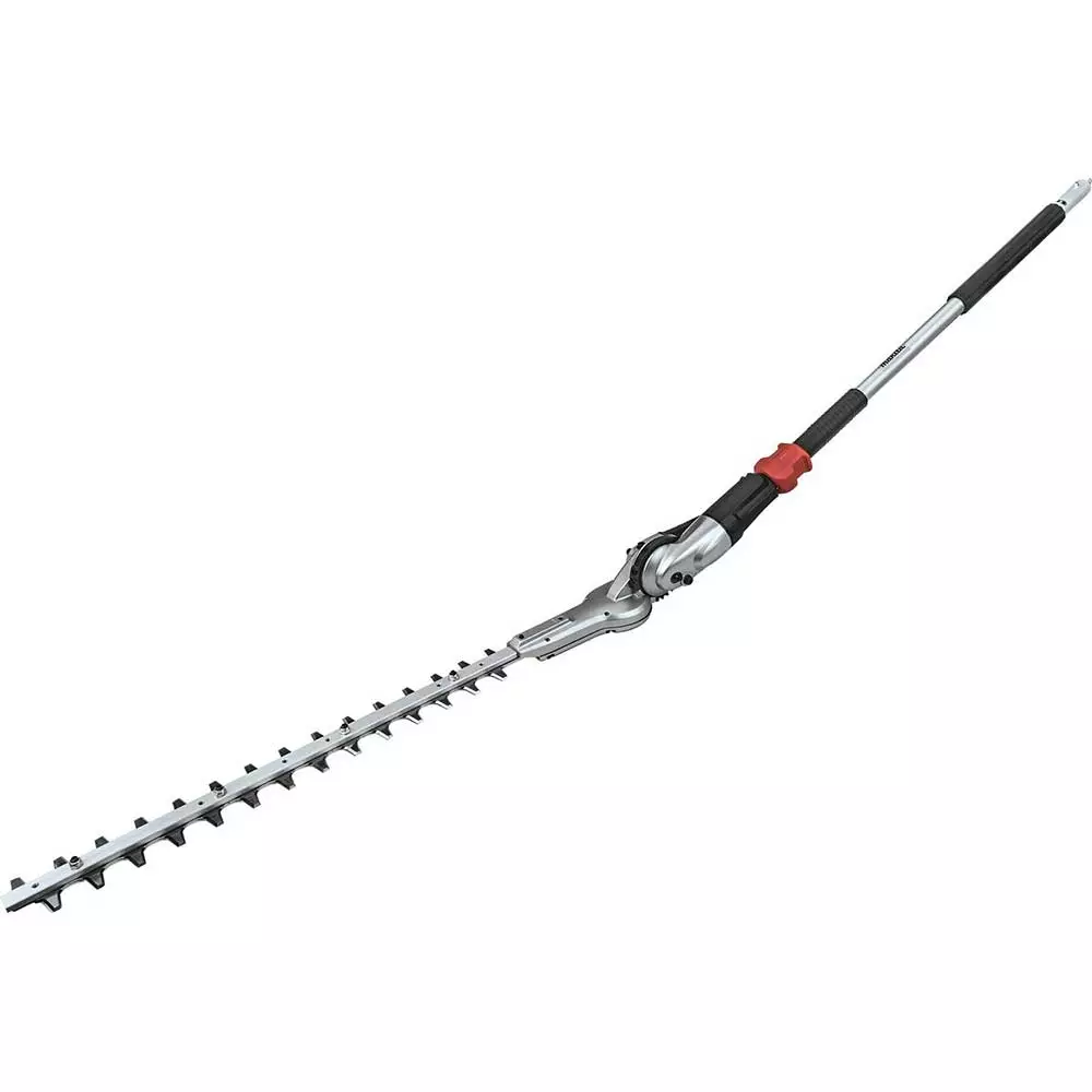 - 20″ Articulating Hedge Trimmer Attachment with dual action, double-sided steel blades for faster cutting