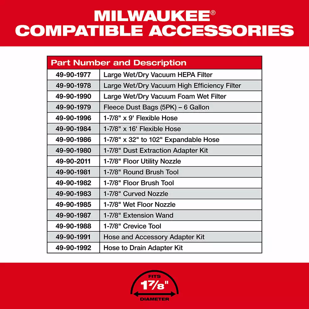 - Can be used with a MILWAUKEE Fleece Dust Bag for less debris build up on the filter