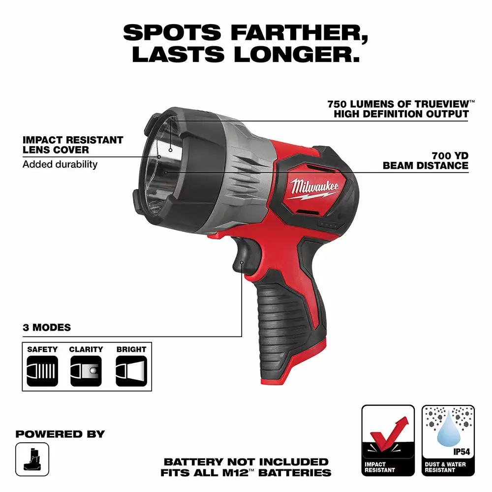 - Strobe Mode: 800 lumens for up to 8 hours with M12 XC 4.0 Pack
