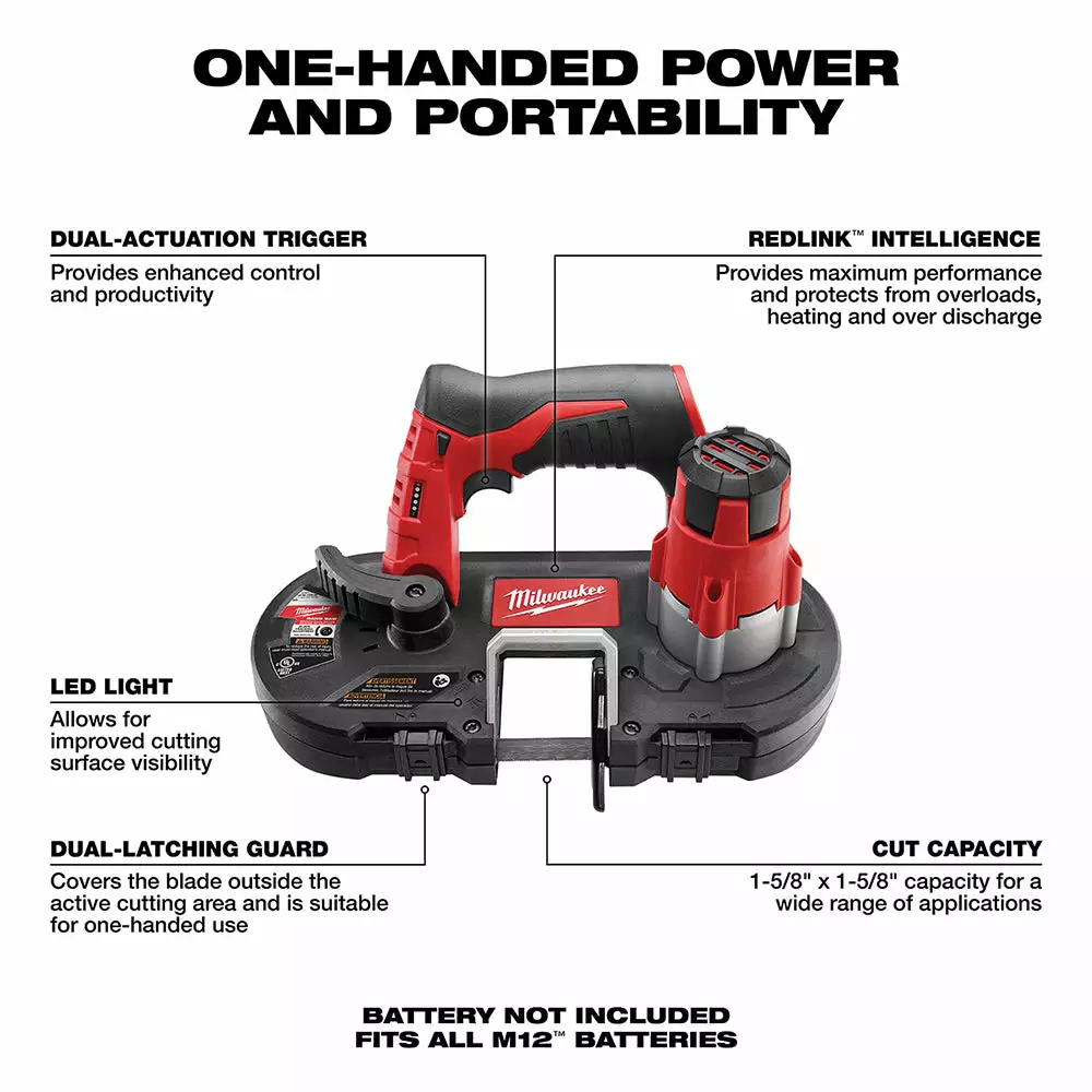 - One-Handed Cuts: Most compact size and lightest weight of any cordless band saw