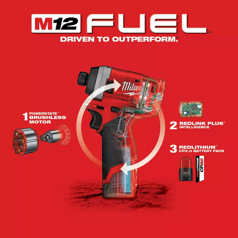 Milwaukee 2553-21 M12 FUEL 1/4″ Brushless Impact Driver Kit W/ 2.0 Ah Battery Tools & Equipment