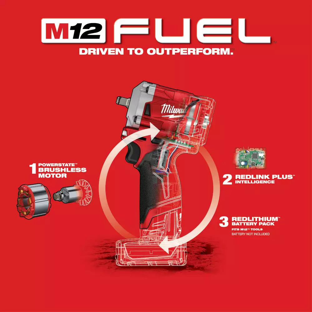 - Milwaukee M12 12-Volt FUEL 3/8-Inch Stubby Impact Wrench (Bare Tool) – 2554-20