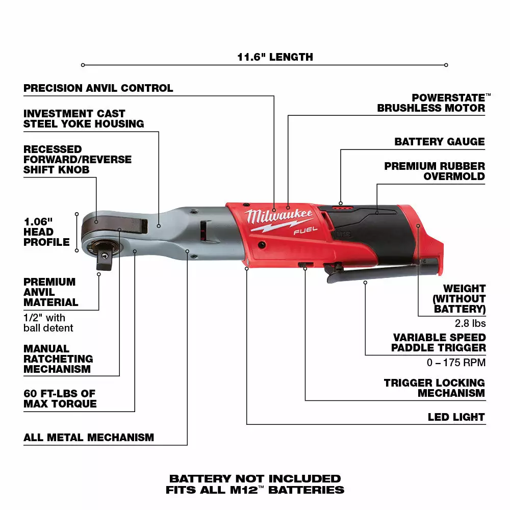 - 12-Volt 1/2-Inch Cordless Ratchet – Bare Tool
