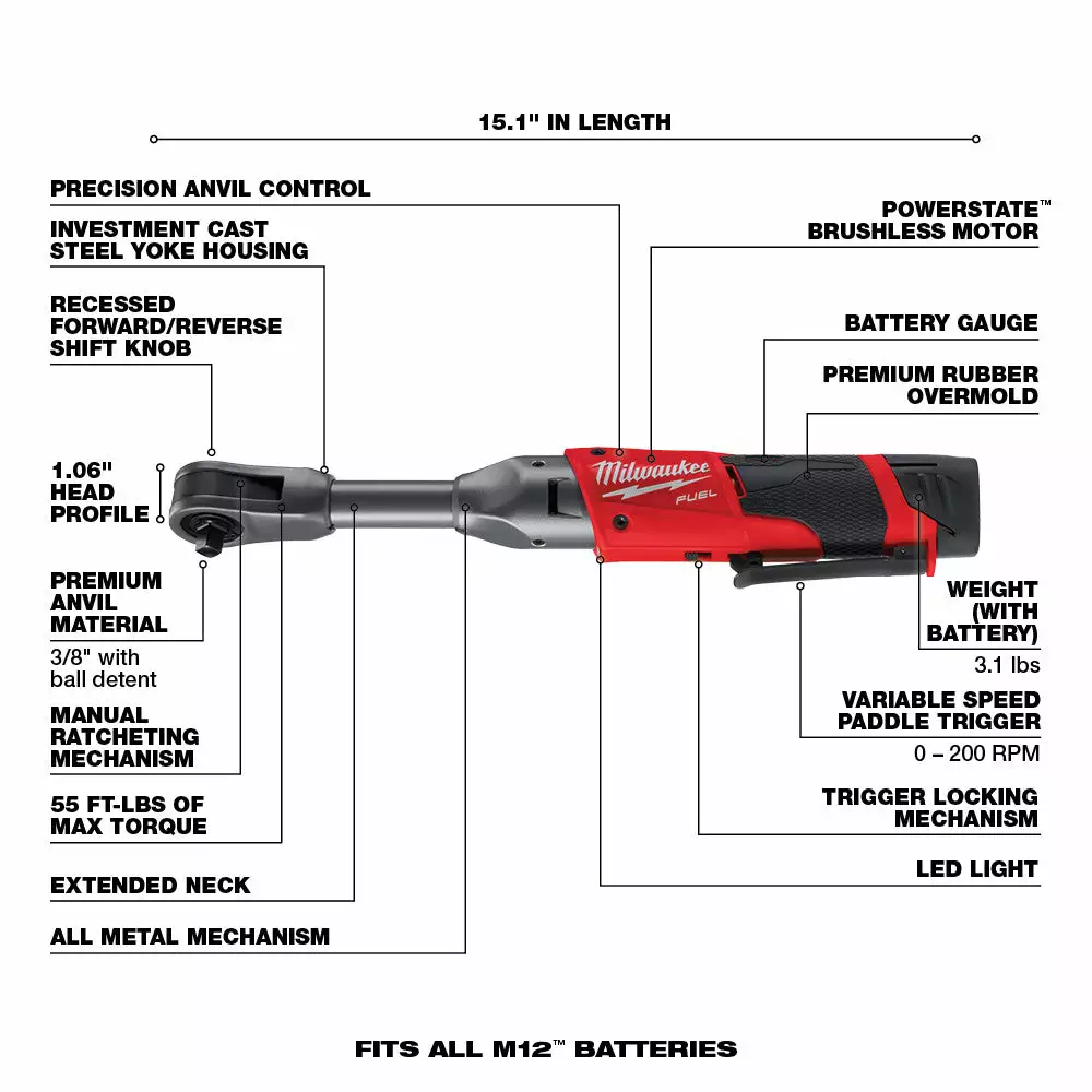 - M12 FUEL 3/8″ Extended Reach Ratchet – 2560-20