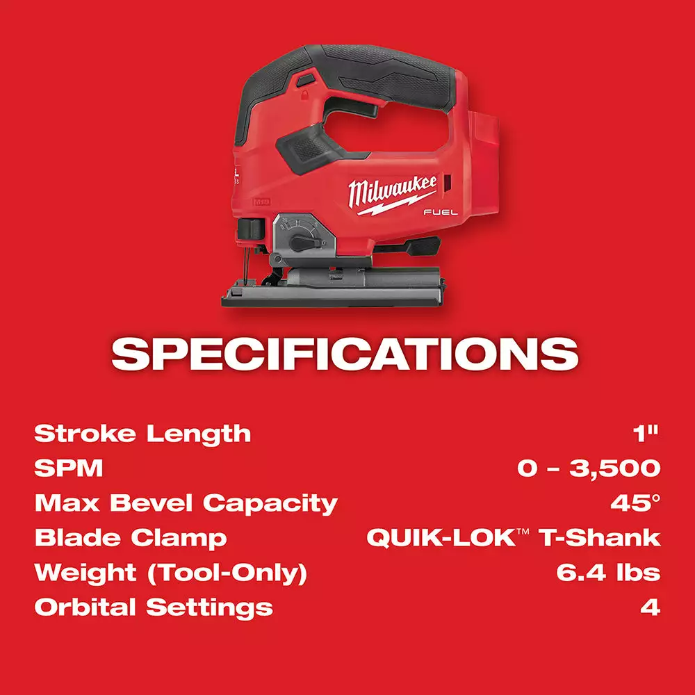 - Milwaukee FUEL M18 18-Volt Cordless D-Handle Jig Saw (Bare Tool) – 2737-20