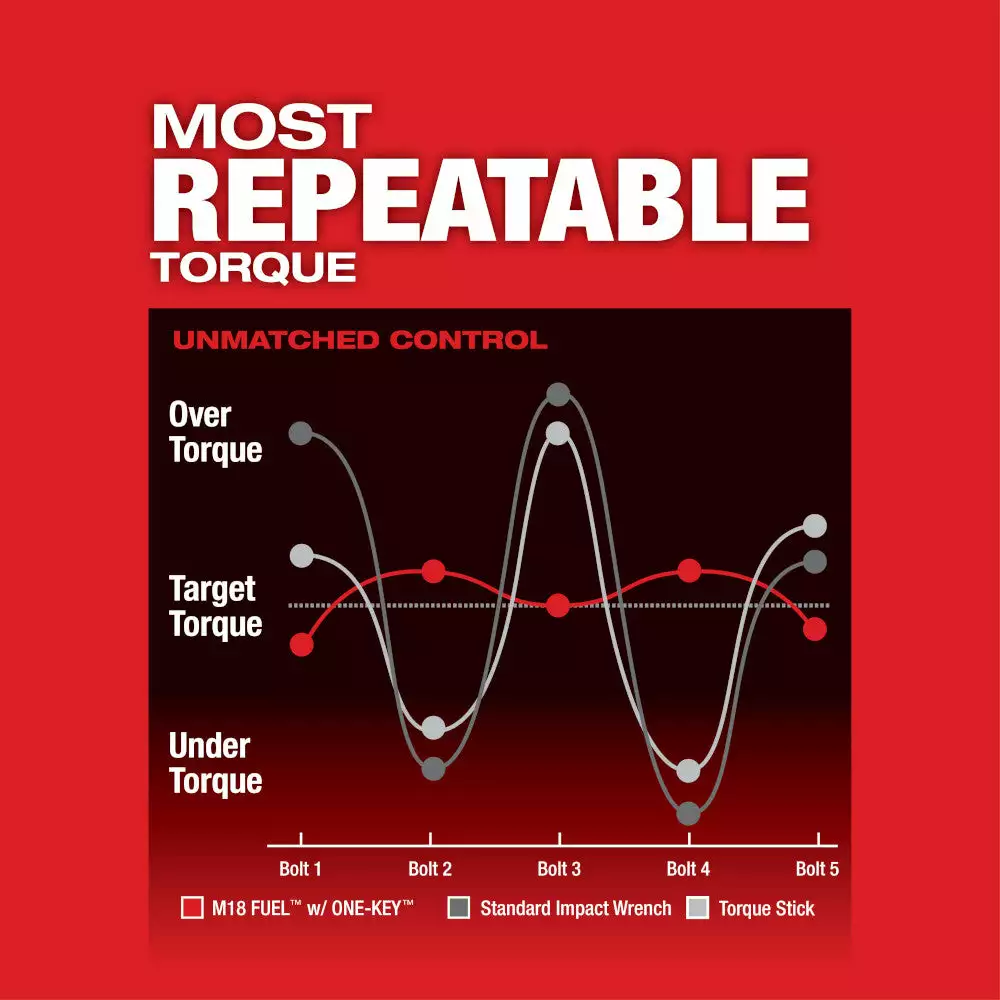 - M18 FUEL with ONEKEY technology provides the most repeatable Impact Wrench in the industry