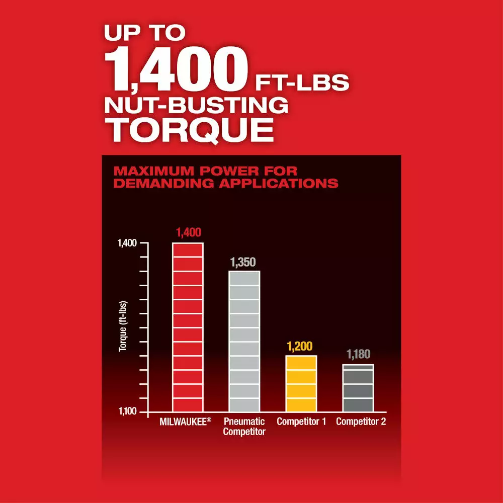 - Up to 1400 ft-lbs Nut-Busting Torque