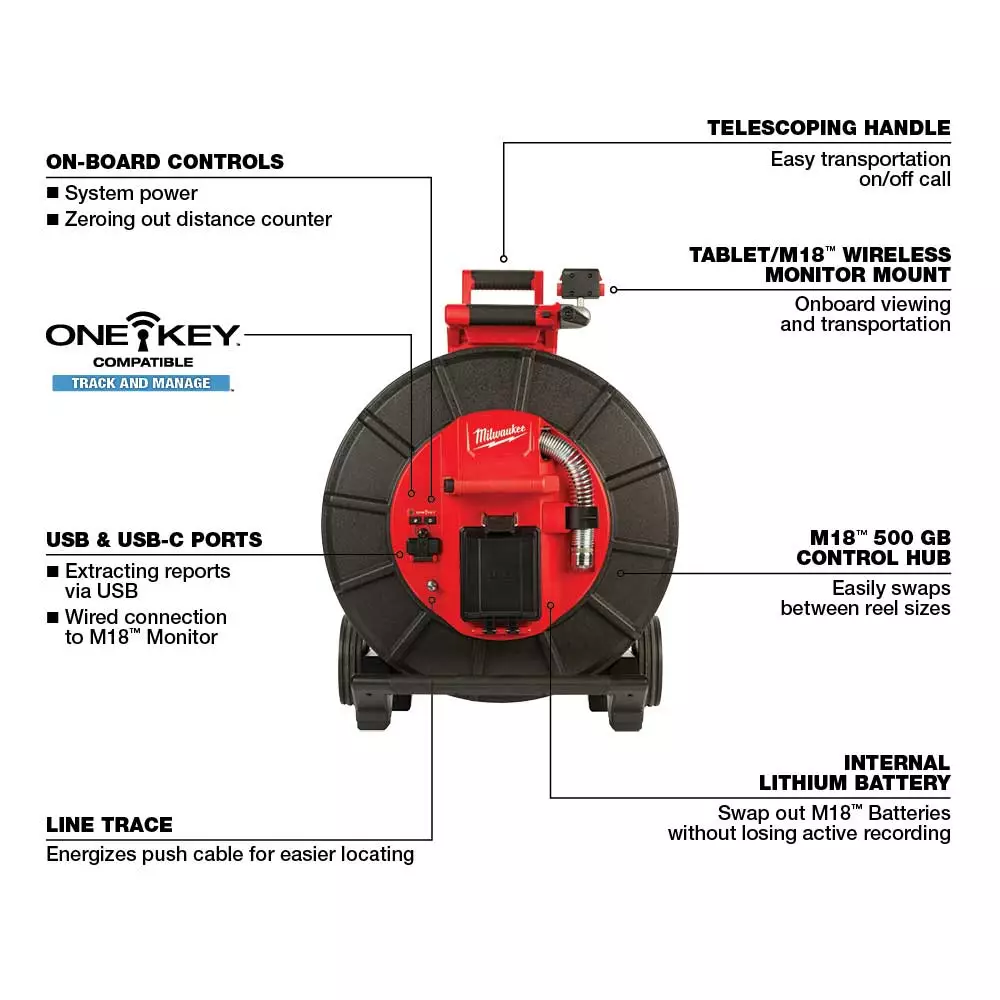 | Video Display | M18 Wireless Monitor or Milwaukee Pipeline Inspection App |