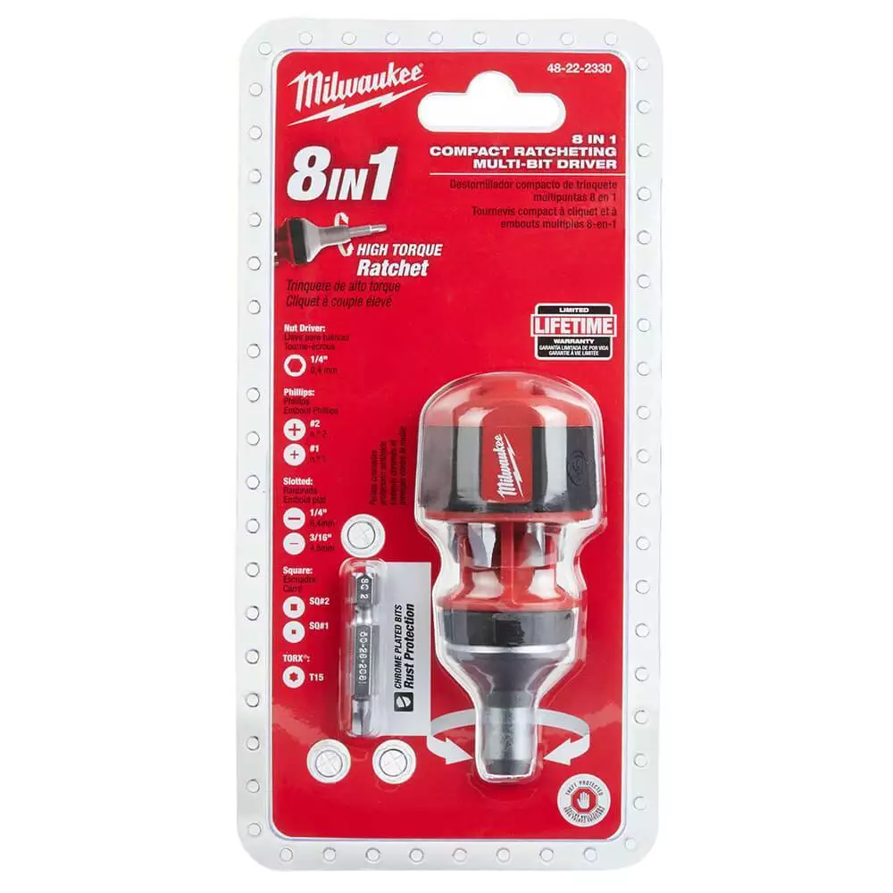 - 8-in-1 Compact Ratcheting Multi-Bit Driver
