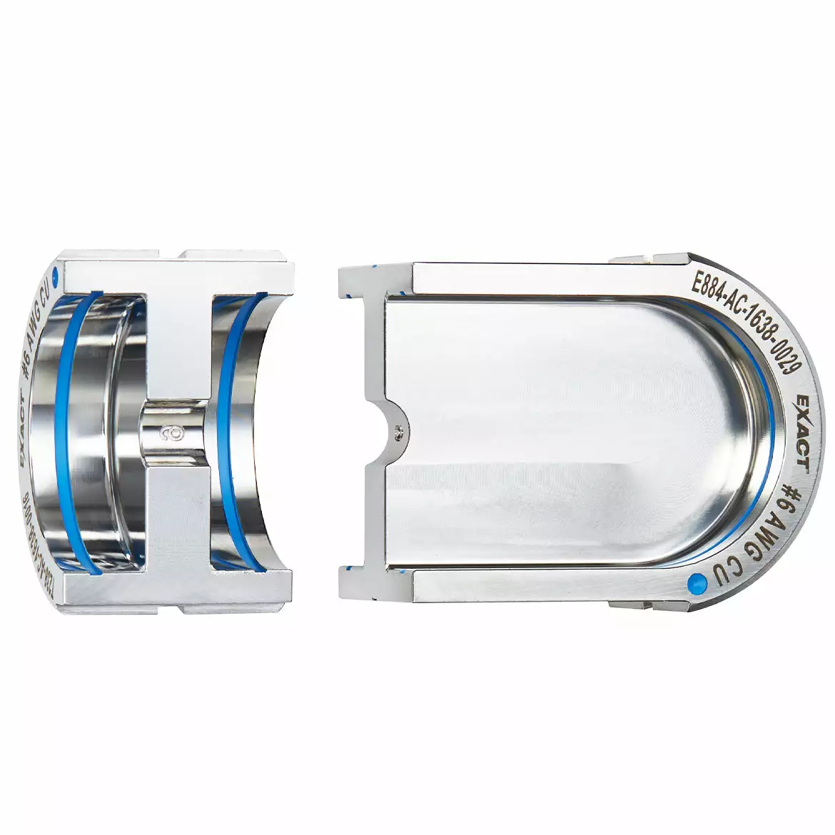 - Die Size Pressed into Connector matches wire size Eliminating Cross Referencing