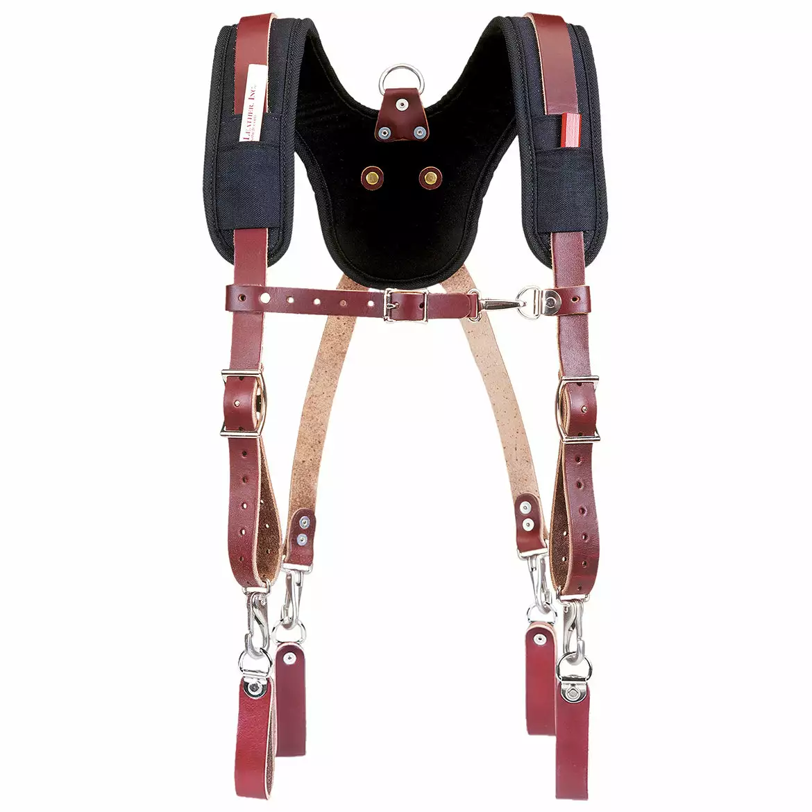 - This Occidental Stronghold Suspension System (5055) relieves hips and lower back strain while you work with its extremely comfortable padded and contoured yoke. This design keeps straps from wandering off your shoulders and distributes weight evenly. Yoke is lined with a special material that wicks away moisture. The leather loop attachment system for up to a 3″ belt is included. Easy on and off, just release the adjustable chest strap and hang up your whole rig with the heavy duty “D” ring provided in center of yoke.