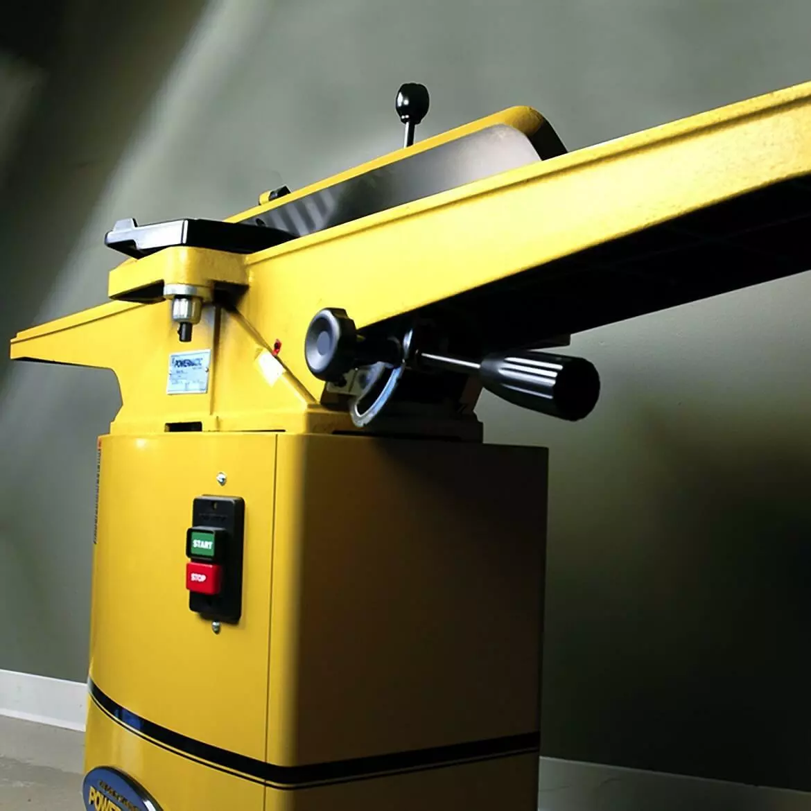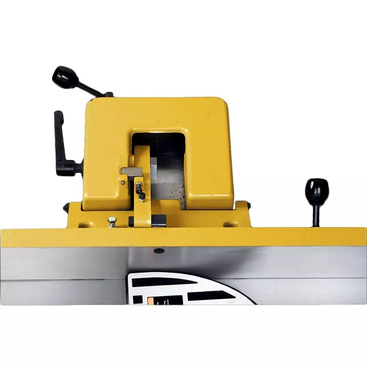 - 6-inch jointer with a 66- by 7-1/4-inch table surface equipped with quick-set knives