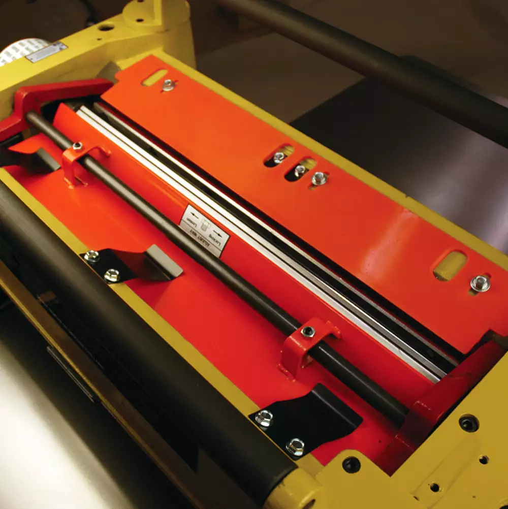 - Feed rollers and cutterhead supported by full cast iron head assembly for rigidity