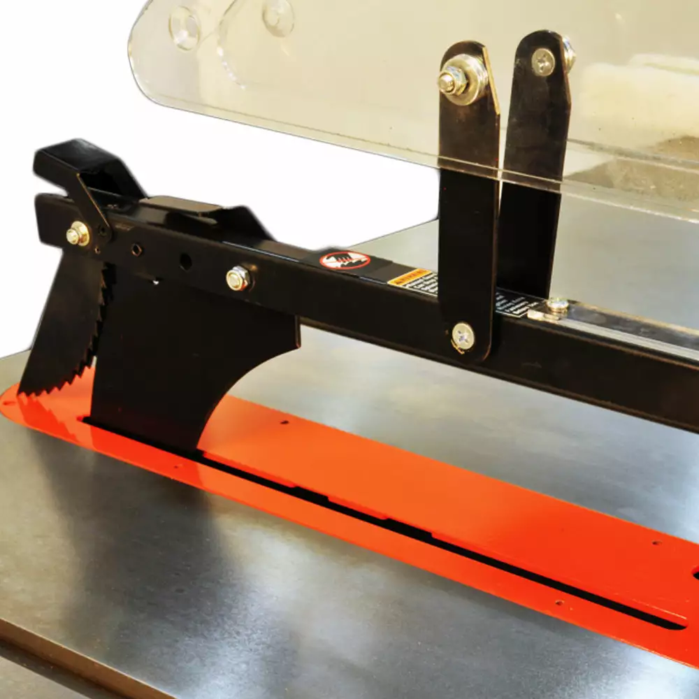 - Riving knife maintains close blade proximity to reduce chance of kickback