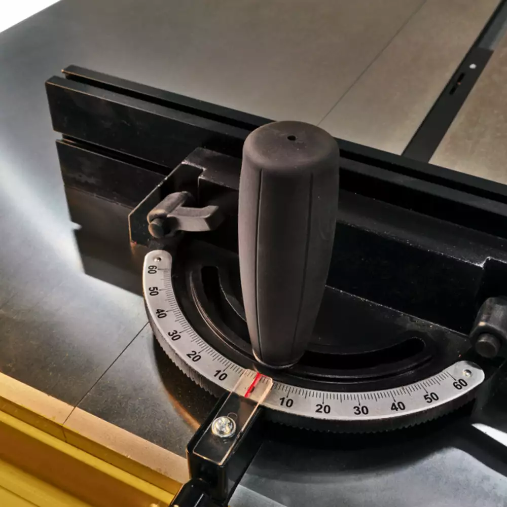 - Micro-adjust miter gauge with extension plate offers wider crosscut support