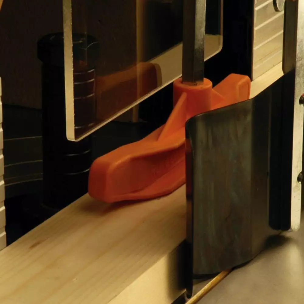 - Sliding table with 4-foot stroke works with miter head, hold-down and fence to accommodate everything from multiple end cuts to tenons