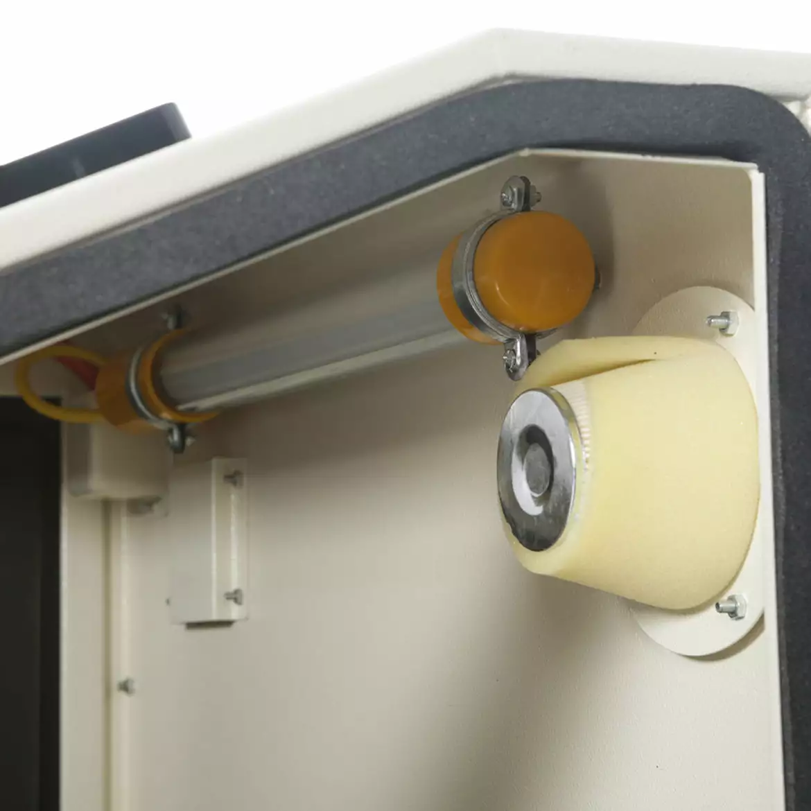 - Includes blasting gun with ceramic tips, built-in fluorescent lamp, and sealed glove ports