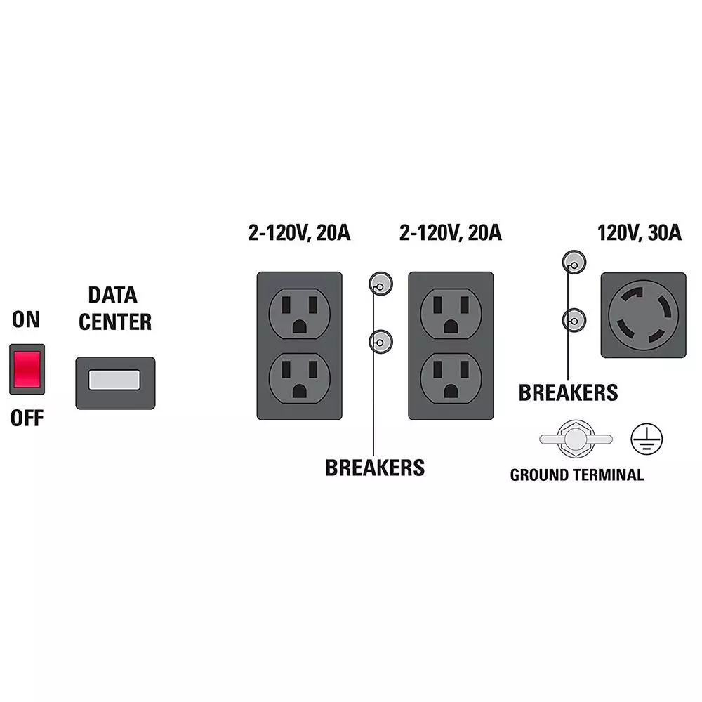- Covered outlets include: four 120-Volt 20 Amp household and one 120-Volt 30 Amp locking.