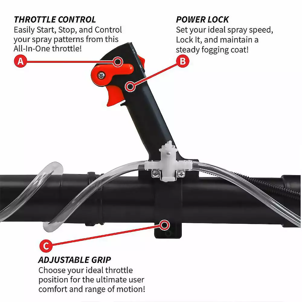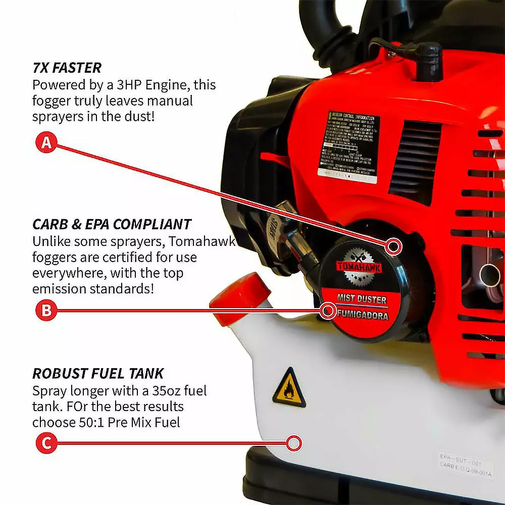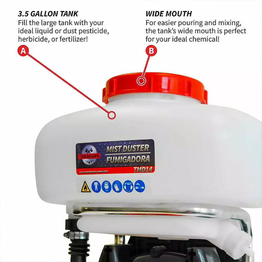 - Works with liquid and dust pesticides