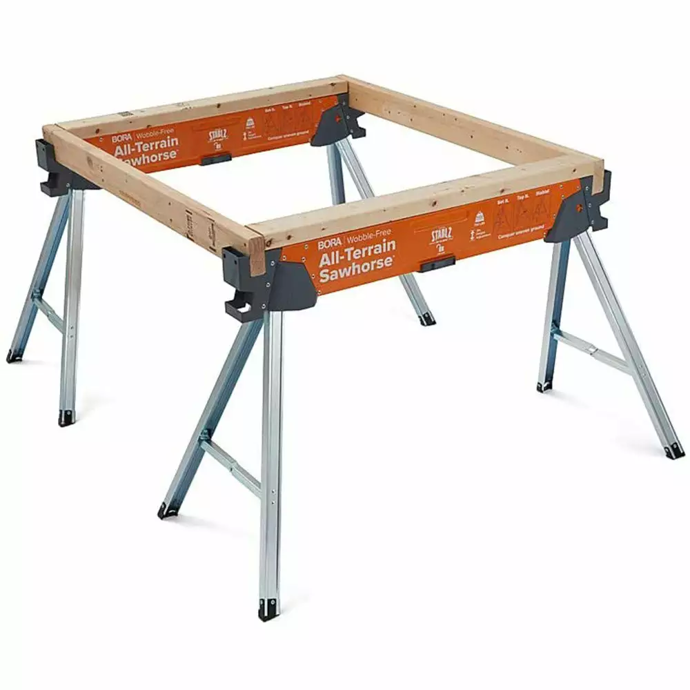 - Revolutionary STABLZTM leg design stabilizes your sawhorse setup by pivoting the legs with a simple tap