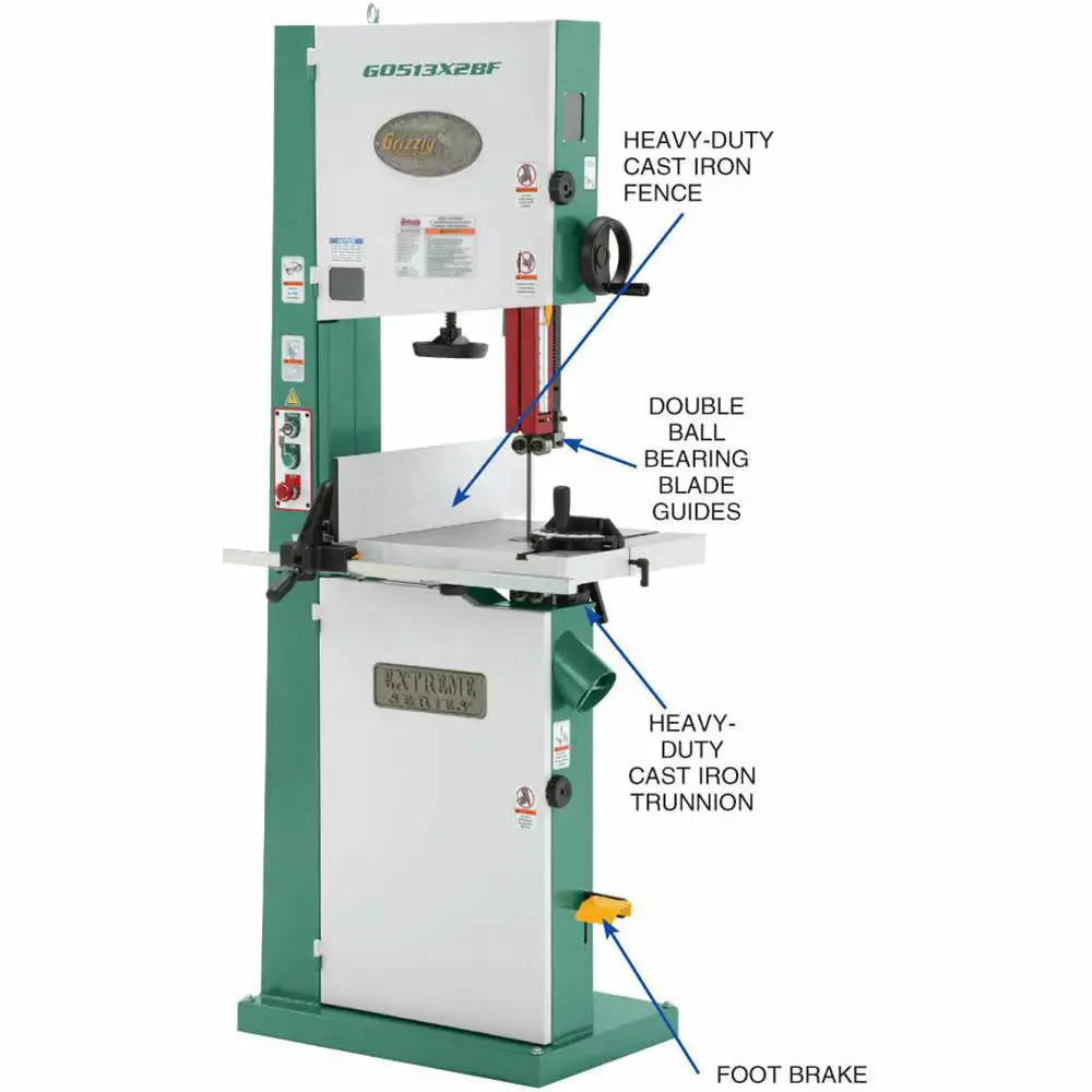 - 17 in 2 Hp Extreme Series Bandsaw with Cast ironTunnion and Foot Brake Micro Switch – G0513X2BF