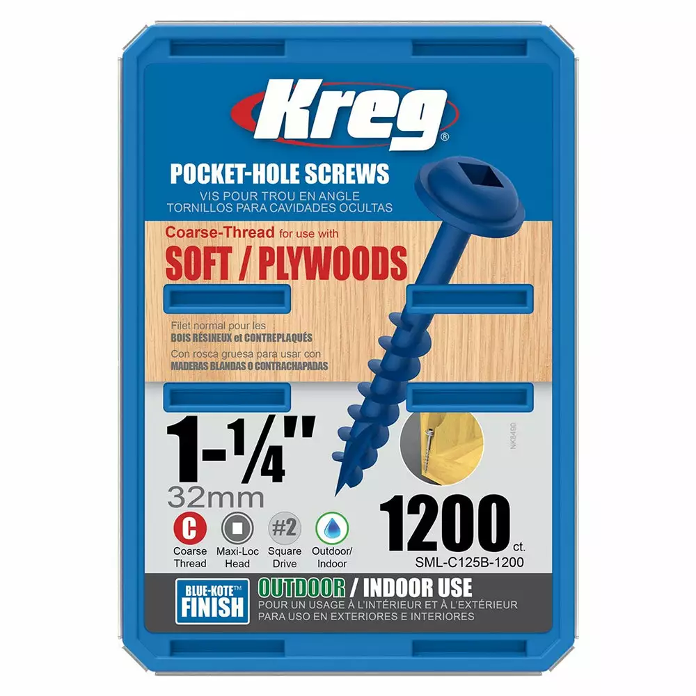 - 1-1/4-Inch Coarse Thread Blue-Kote Pocket Screws – 1,200pk