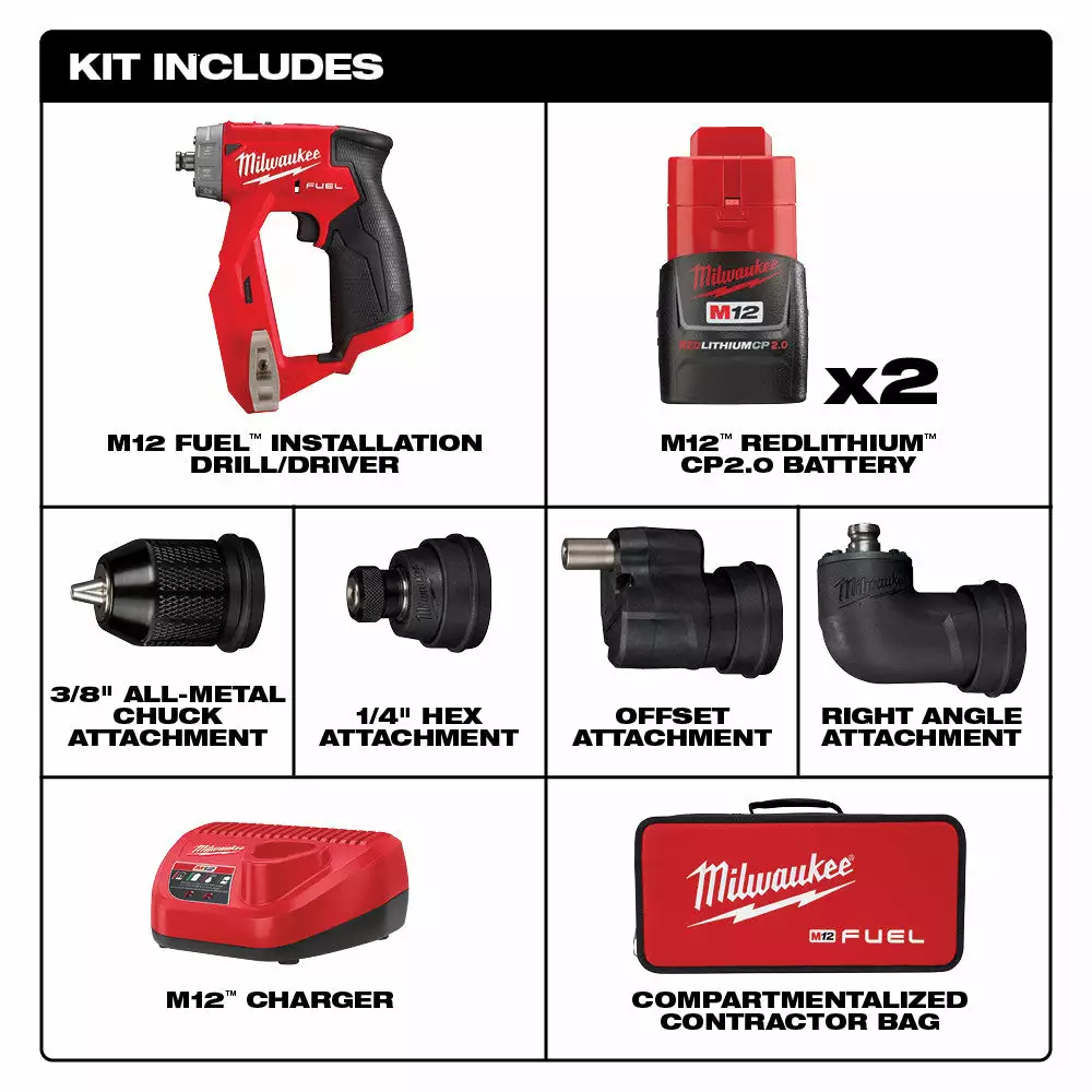 - Milwaukee M12 FUEL Brushless Installation 4-in-1 Drill/Driver Kit – 2505-22
