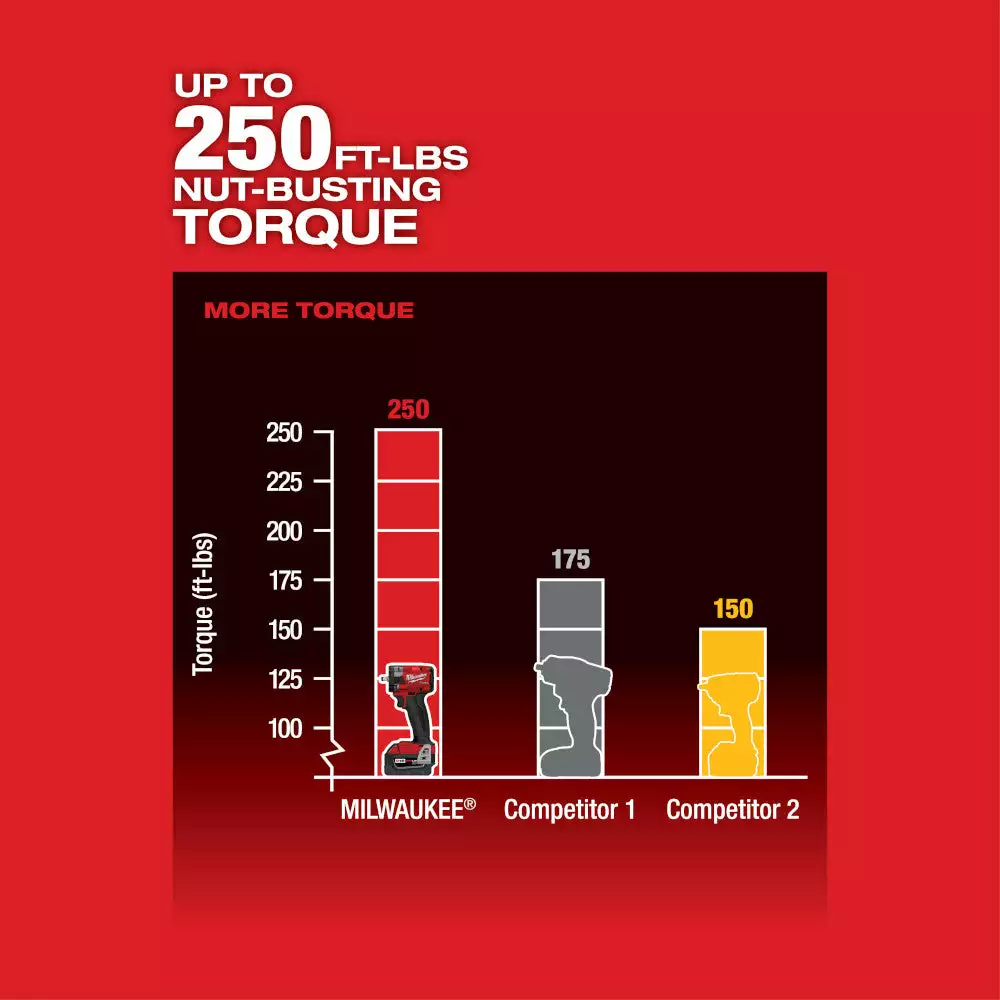 - The POWERSTATE Brushless motor delivers up to 250 ft-lbs. of nut-busting torque