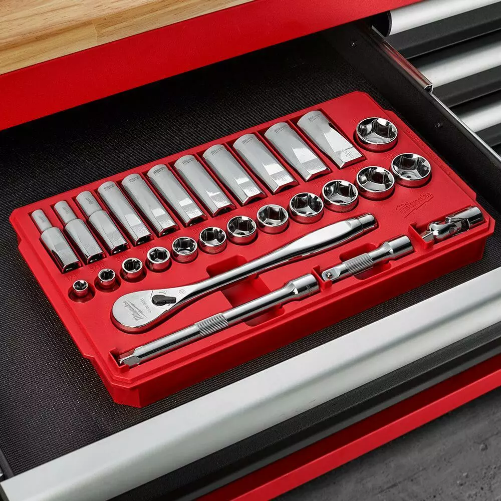 - Milwaukee 1/2, 1/4, 11/16, 13/16, 3/4, 3/8, 5/16, 7/16, 7/8, 9/16, -Inch Deep Well Socket- 48-22-9408