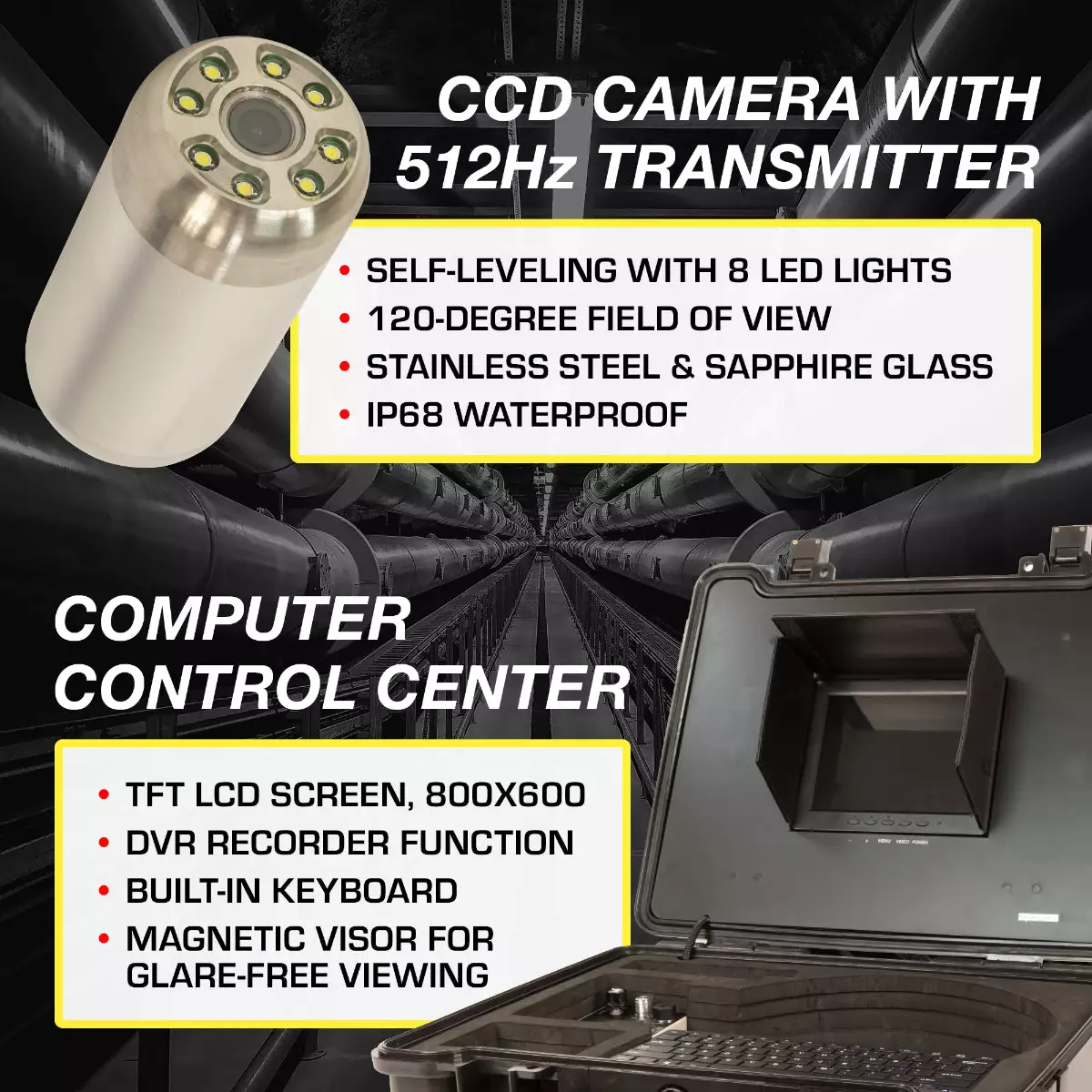 - Find blockages quickly with the camera’s built-in 512Hz transmitter. Up to 10-ft. range in cast iron and non-metallic mediums. (Locator sold separately.)