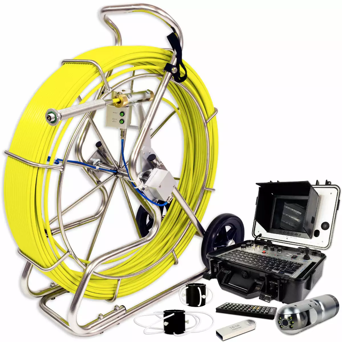 - The extra-long 393 ft. fiberglass push cable is rugged yet flexible and lightweight. Meter markings are included on the cable for precise measurements. The sturdy stainless steel reel ensures everything stays secure, while the large wheels allow for easy mobility.