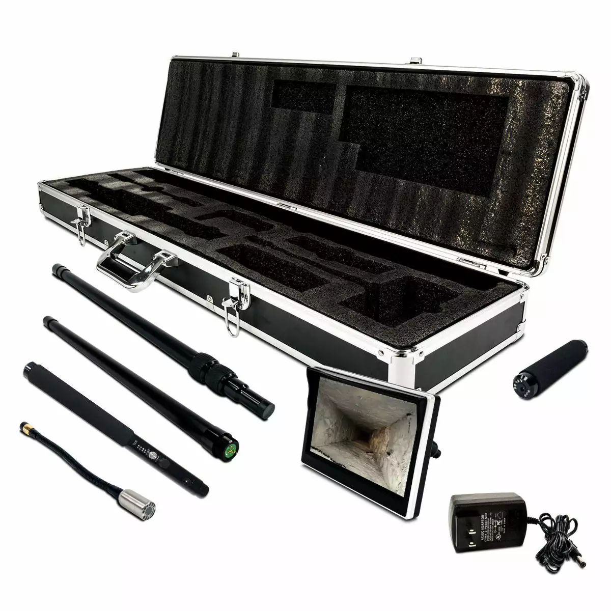 - Transport your inspection camera securely with the portable aluminum case. High-density foam padding and double keyed locks will keep your investment safe and secure.
