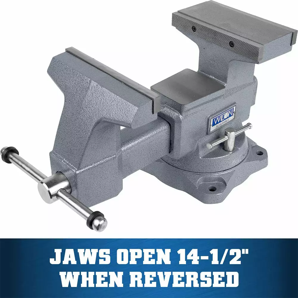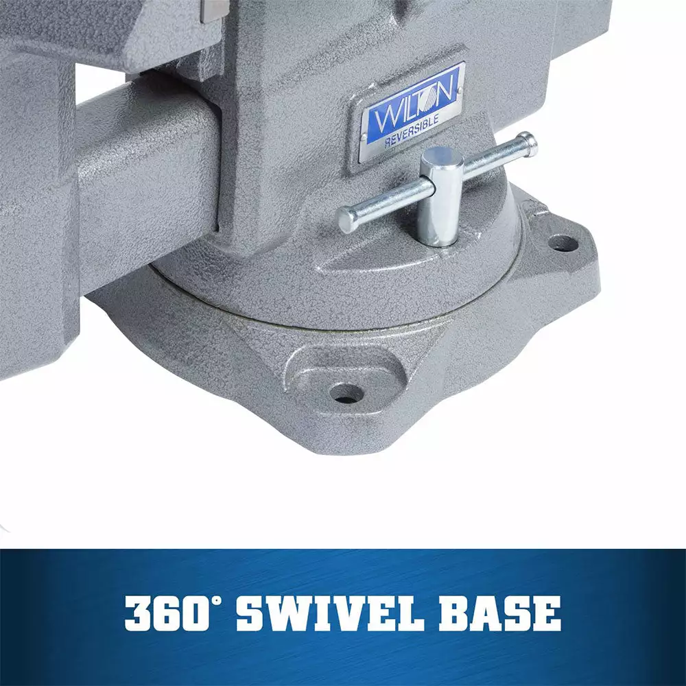 - Wilton 8 in. Reversible Bench Vise with 360 deg. Swivel Base – 28823